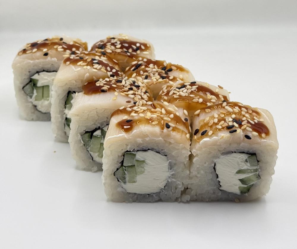 Сыр креметта, огурец, рыба эсколар, соус унаги