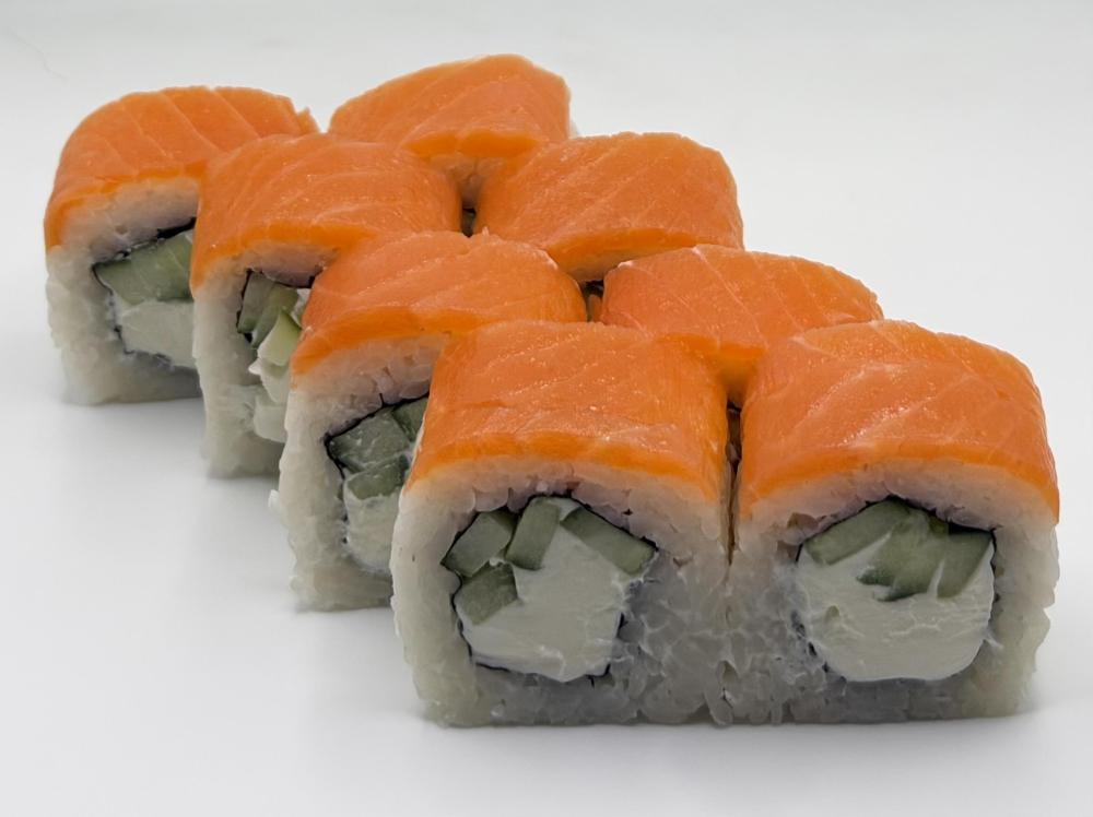 Ролл Филадельфия со сливочным сыром креметта , свежим огурцом и слабосоленым лососем