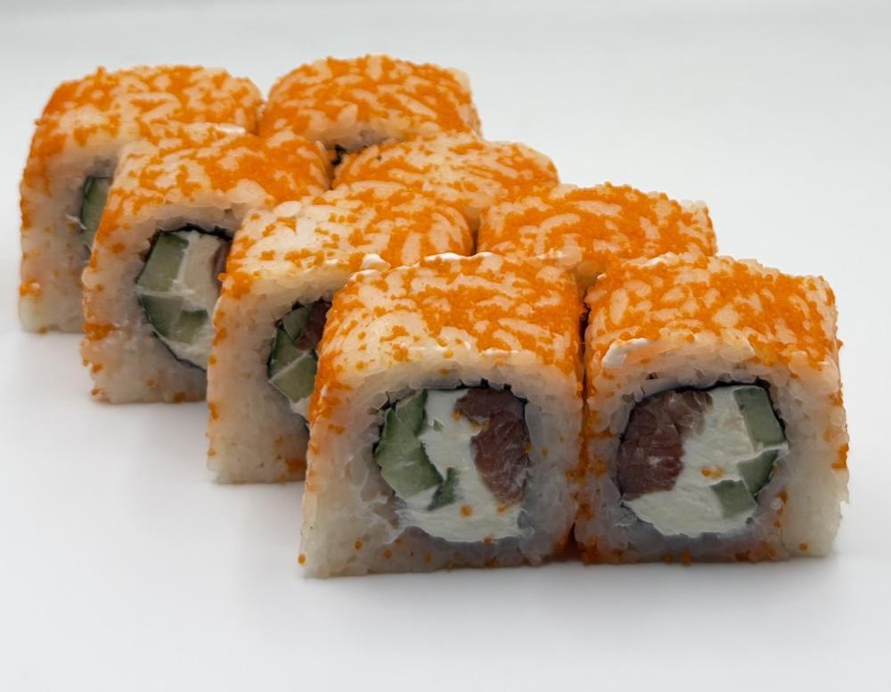 Сыр креметта, огурец, слабосоленый лосось, икра масаго