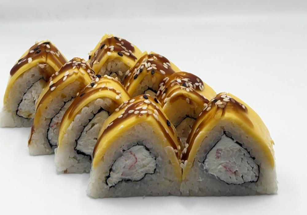 Сливочный сыр креметта, снежный краб, сыр Чеддер, соус унаги